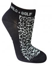 Modische Kurzsocken für Damen aus hochwertigen Materialien. Mit Leopardenmuster auf der Oberseite und Schriftzug "Wild Golf" mit Strass an den Bündchen.