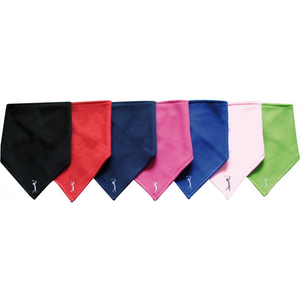 Der ideale Alljahres-Schutz gegen Kälte und Zugluft: die flauschigen Dreiecks-Halstücher von cbfmoda aus Polarfleece (100% Polyester), verziert mit dem Stickmotiv einer Golferin.