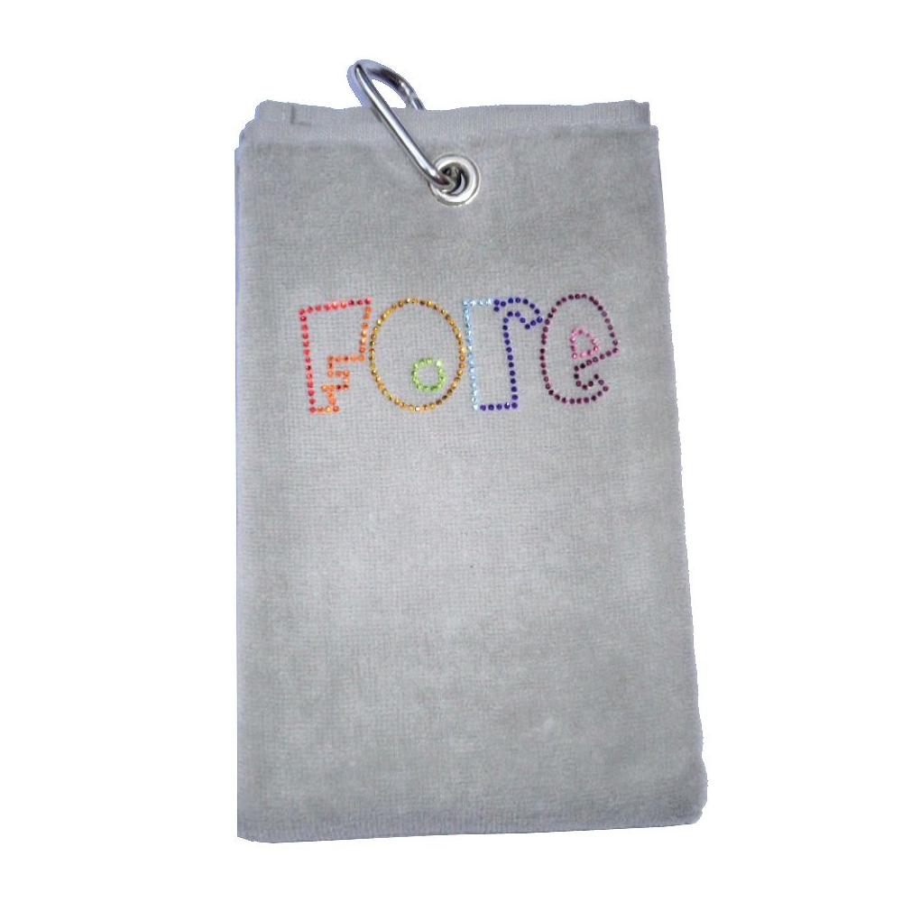 Hochwertiges Golftuch von cbfmoda aus hochwertigem Samtfrottier (100% Baumwoll-Velours, 500g/qm), verziert mit Motiven aus funkelnden Kristall-Elementen und/oder farbigen Metallsteinchen.