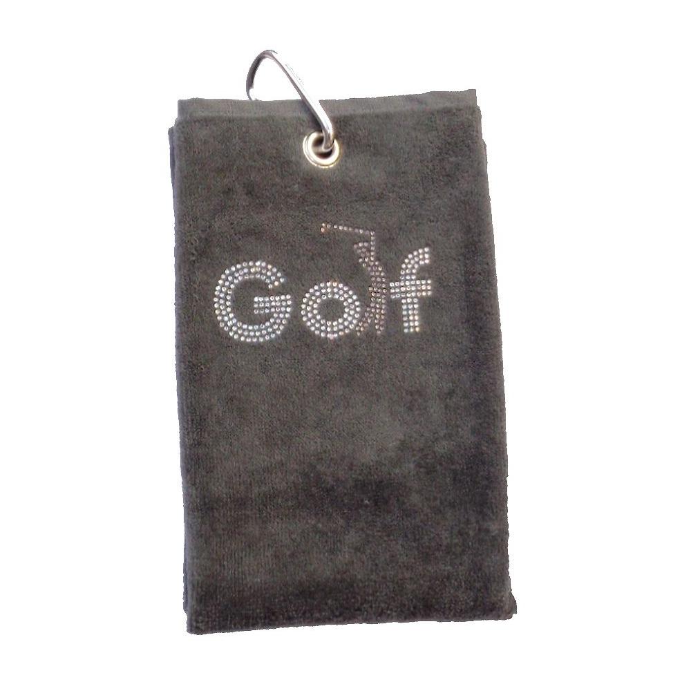 Hochwertiges Golftuch von cbfmoda aus hochwertigem Samtfrottier (100% Baumwoll-Velours, 500g/qm), verziert mit Motiven aus funkelnden Kristall-Elementen und/oder farbigen Metallsteinchen.