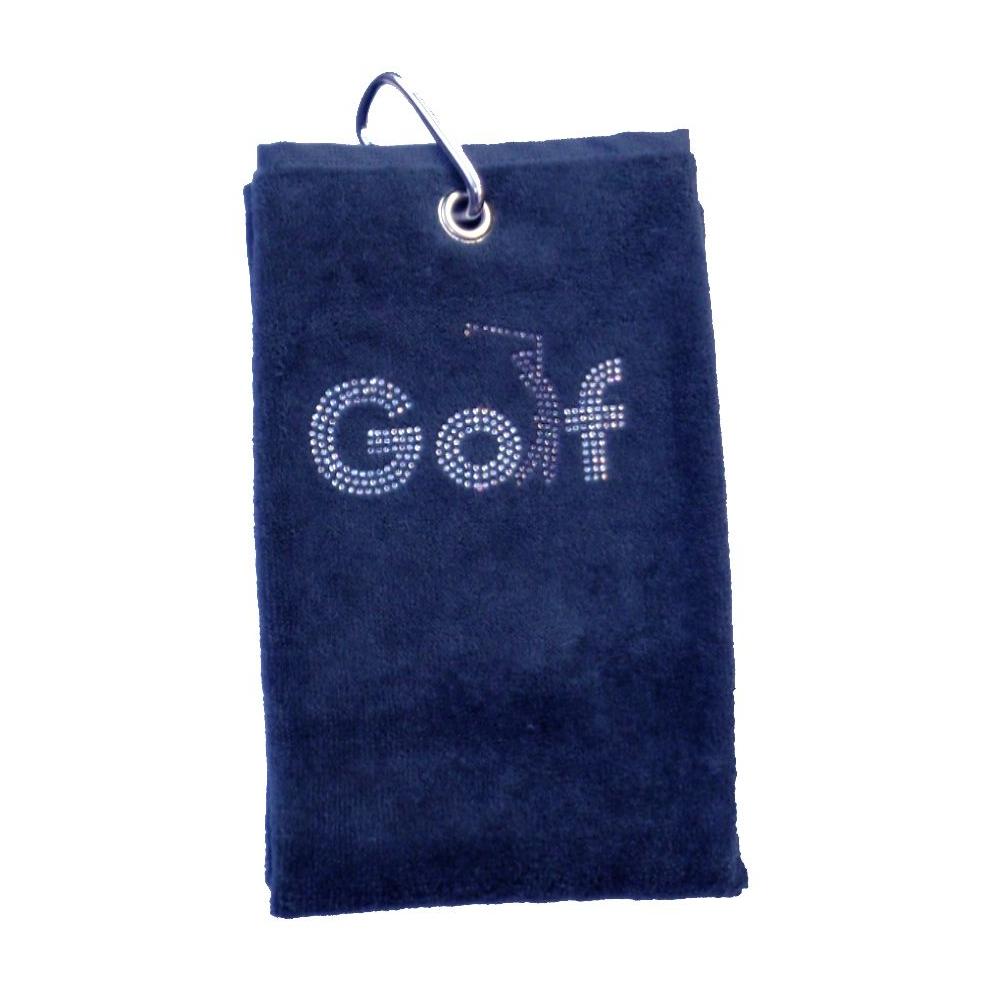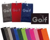Hochwertiges Golftuch von cbfmoda aus hochwertigem Samtfrottier (100% Baumwoll-Velours, 500g/qm), verziert mit Motiven aus funkelnden Kristall-Elementen und/oder farbigen Metallsteinchen.