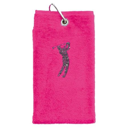 Hochwertiges Golftuch von cbfmoda aus hochwertigem Samtfrottier (100% Baumwoll-Velours, 500g/qm), verziert mit Motiven aus funkelnden Kristall-Elementen und/oder farbigen Metallsteinchen.