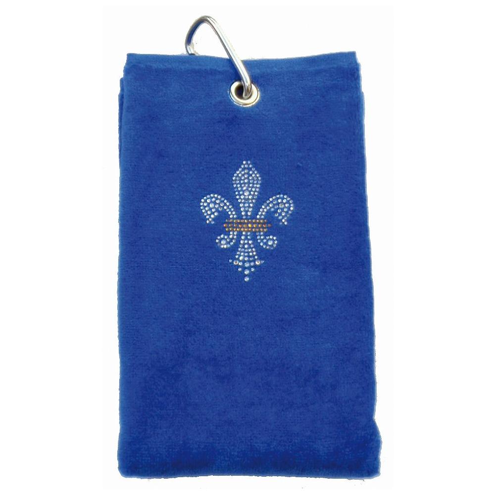 Hochwertiges Golftuch von cbfmoda aus hochwertigem Samtfrottier (100% Baumwoll-Velours, 500g/qm), verziert mit Motiven aus funkelnden Kristall-Elementen und/oder farbigen Metallsteinchen.