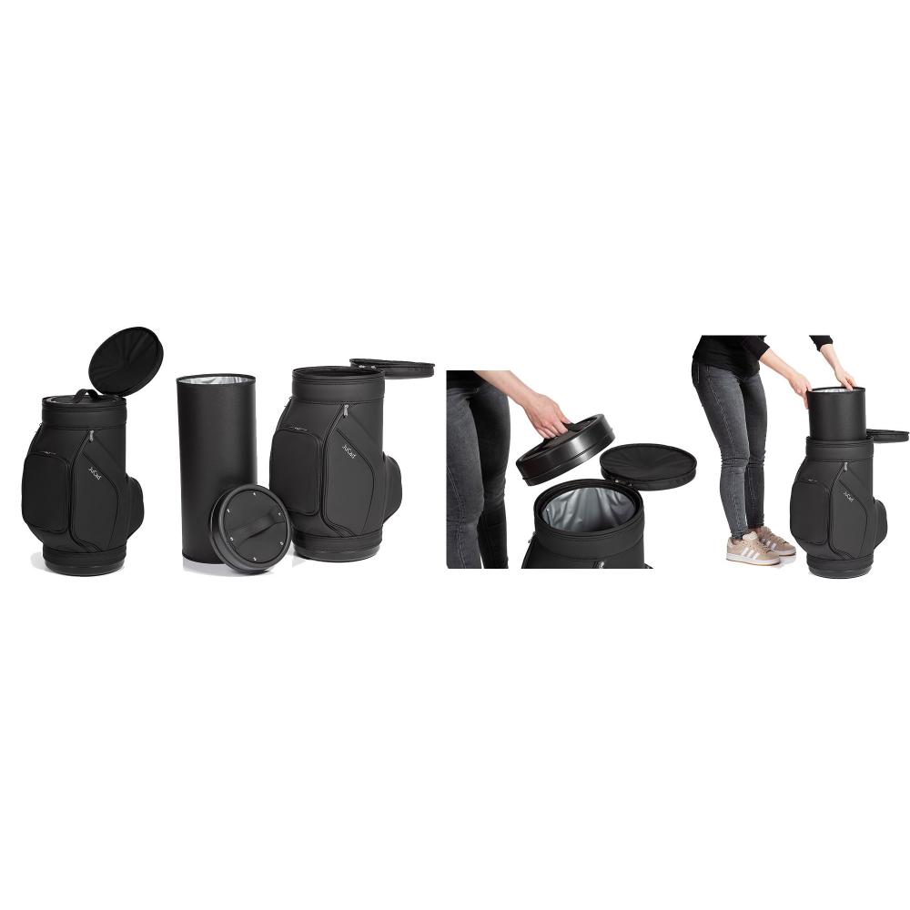 Dieser multifunktionale Getränkekühler mit Sitzhocker in Form eines Golfbags ist nicht nur praktisch und originell, sondern der ultimative Outdoor-Begleiter. Ob auf dem Golfplatz, am Meer, im Garten oder auf der Terrasse, die große Kühleinheit hält Ihre Lebensmittel und Getränke schön kalt und bietet Platz für mehrere Flaschen Wein, Champagner oder andere Getränke. Der Coolboy Hocker ist ebenfalls ein toller Blickfang in Ihren Wohnräumen und kann als Aufbewahrungsbehälter und weitere Sitzgelegenheit genutzt werden.