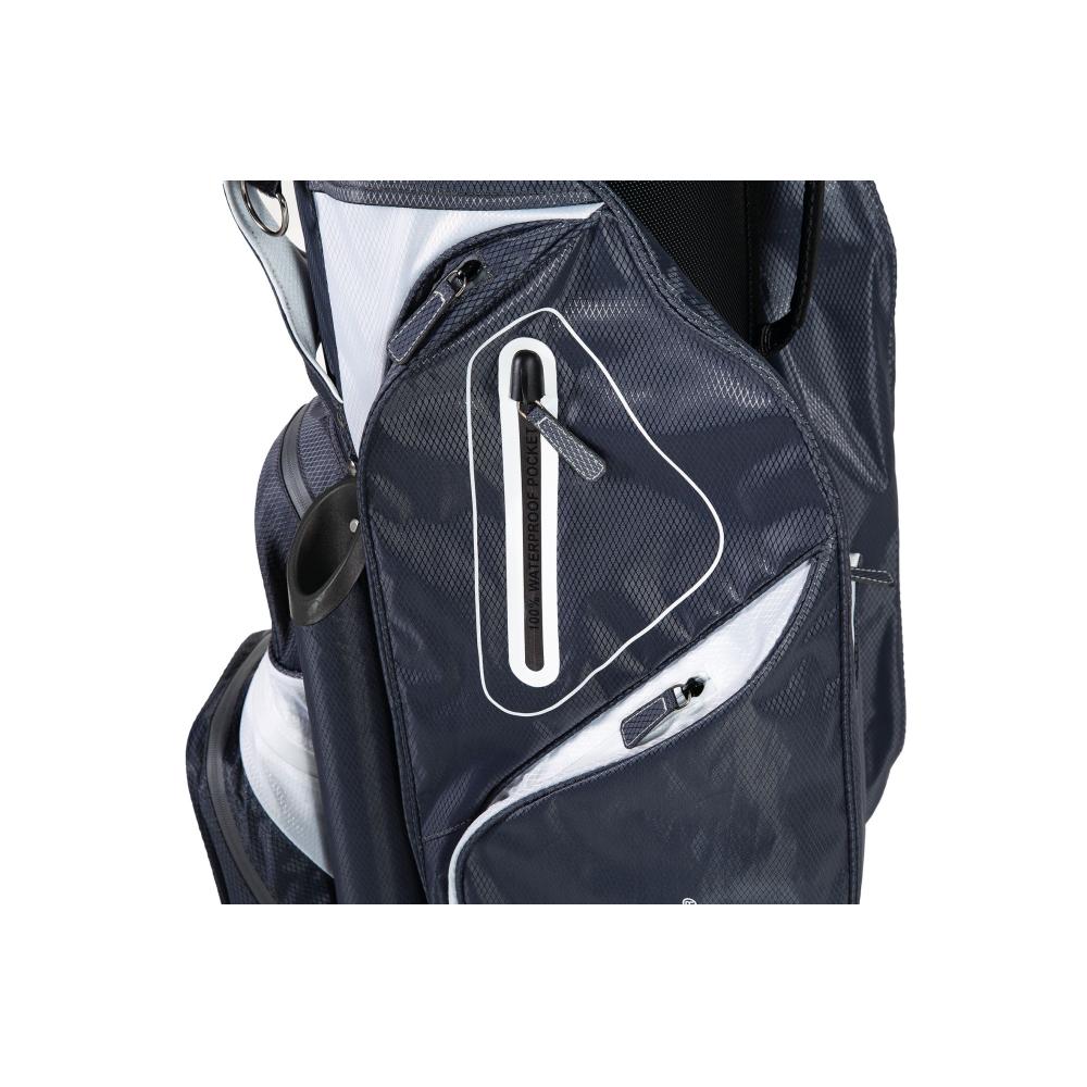 und stressfreie Runden. Weitere praktische Extras des wasserabweisenden Bags sind die vielen kleinen und großen Außentaschen für Ihr Golfequipment: eine zu 100% wasserdichte Innentasche für sensible Wertgegenstände, ein Extrafach für den JuCad Powerpack, ein großzügiges Kühlfach, eine extra Oversize-Putterröhre sowie verschiedene Hebegriffe, die in jeder Situation helfen das Bag gut
