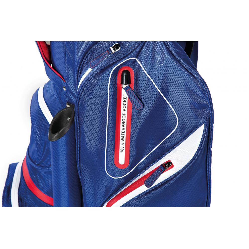 und stressfreie Runden. Weitere praktische Extras des wasserabweisenden Bags sind die vielen kleinen und großen Außentaschen für Ihr Golfequipment: eine zu 100% wasserdichte Innentasche für sensible Wertgegenstände, ein Extrafach für den JuCad Powerpack, ein großzügiges Kühlfach, eine extra Oversize-Putterröhre sowie verschiedene Hebegriffe, die in jeder Situation helfen das Bag gut