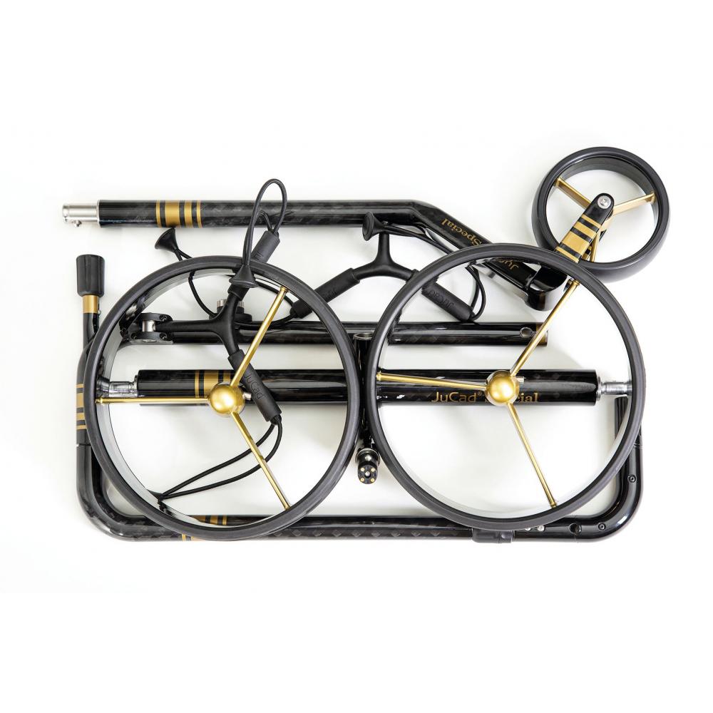 Eleganter geht es nicht! Der JuCad Special, gefertigt aus einem Vollcarbonrahmen in edlem schwarz wird durch feine Goldelemente veredelt. Diese Modellreihe des JuCad Carbon Travel ist weltweit limitiert und jeder Caddy wird auf Anfrage mit Ihrer ein- oder zweistelligen Wunschnmmer geliefert. Mit diesem Wagen ist echtes Formel 1 Feeling auf dem Golfplatz garantiert, erleben Sie mit dem JuCad Special maximalen Fahrspaß bei bewährter JuCad Technik!