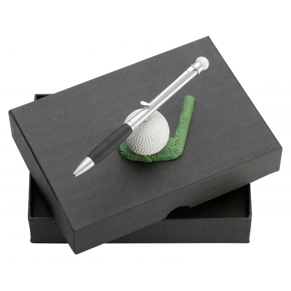 Ein echter Hingucker auf dem Schreibtisch jedes leidenschaftlichen Golfspielers: der Golfball-Kugelschreiber mit Halter.